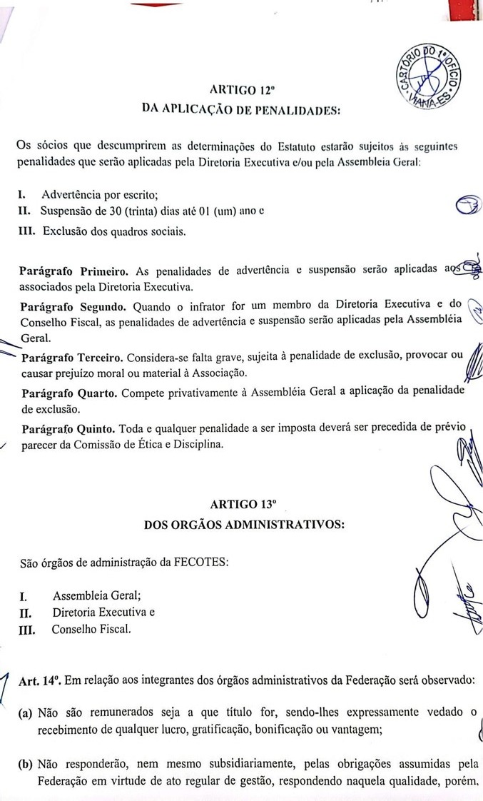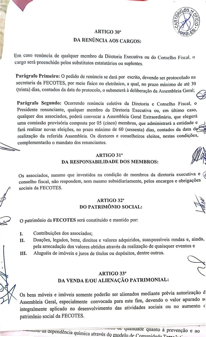 Documentos institucionais da FECOTES